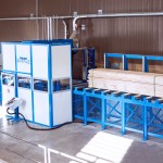 固定式鋸切裝置具有單獨的輥道長度,用于鋸材、刨花板、石膏板等的橫切包裝。