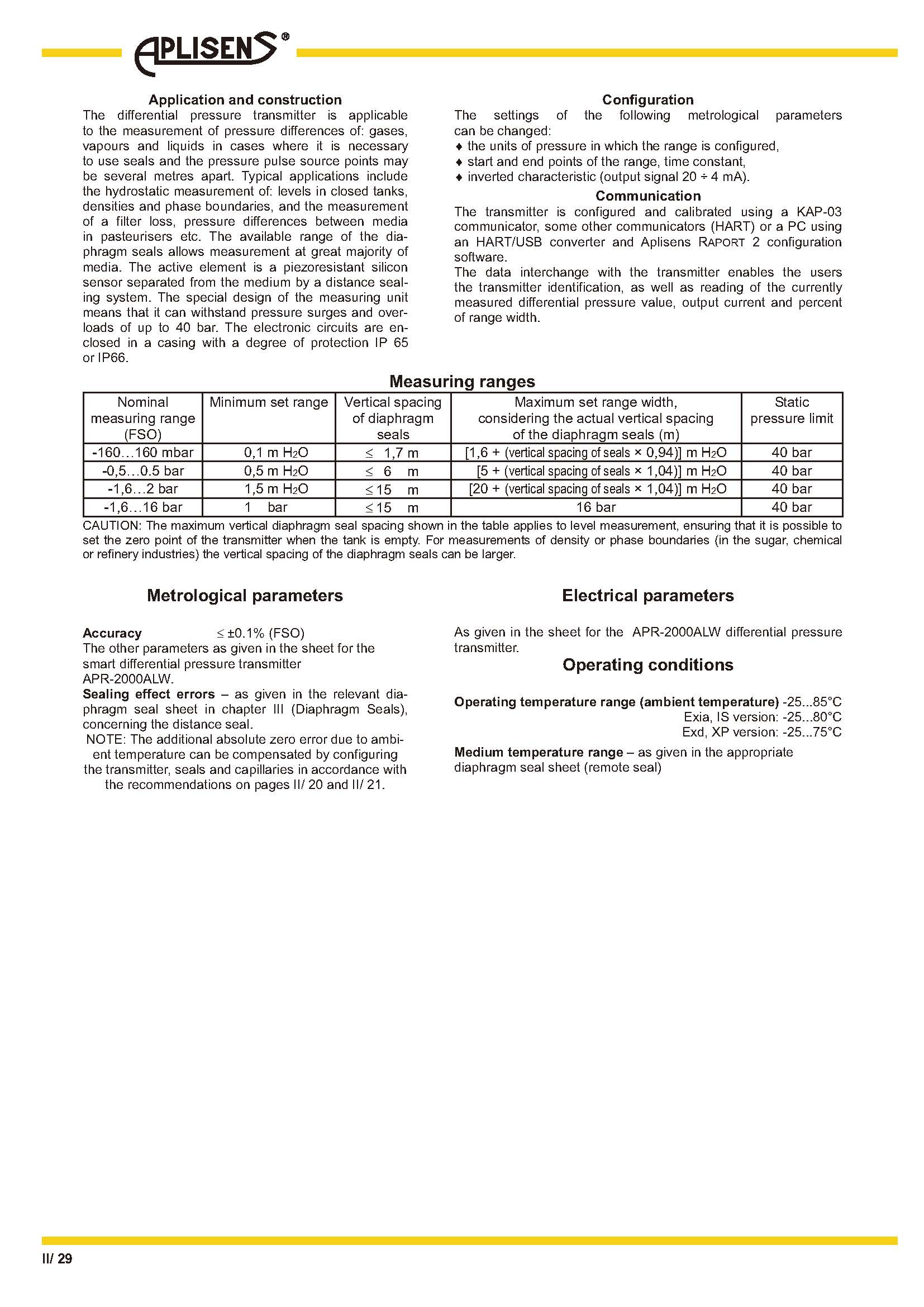 4...20 mA 輸出信號 + HART 5 / HART 7 協議